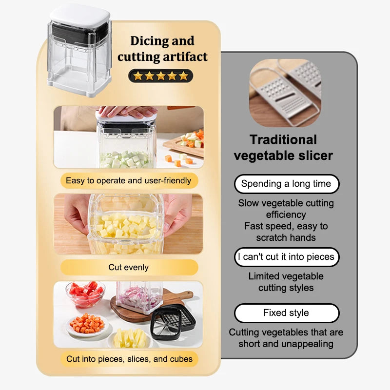 Fry Cutter, Vegetable Chopper Mandoline Slicer with 8-Segment Blade & Dicer Grid