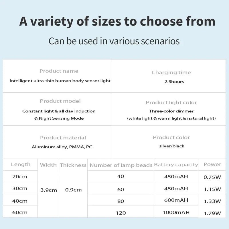 10-60cm LED Ultra Thin Lights Motion Sensor night light Wireless