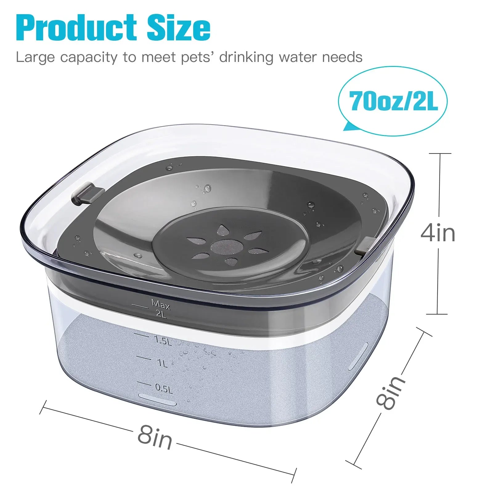 70oz/3L Transparent Dog Water Bowl