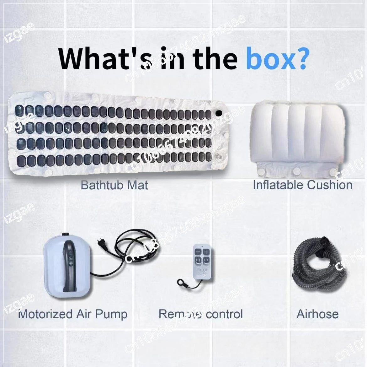 Anti slip full body waterproof hot tub spa mat, upgraded bubble machine+124cm bath mat+new pillow set
