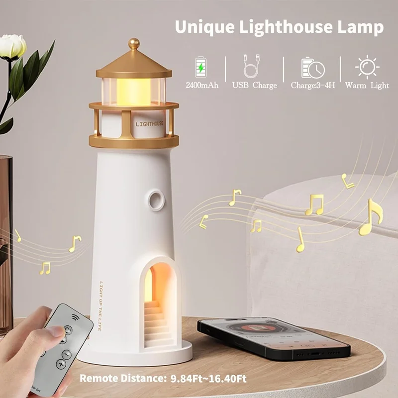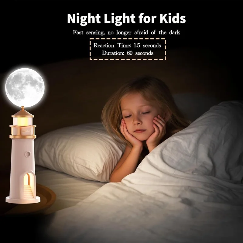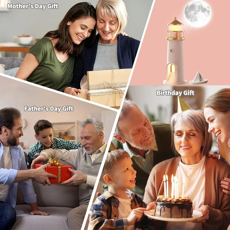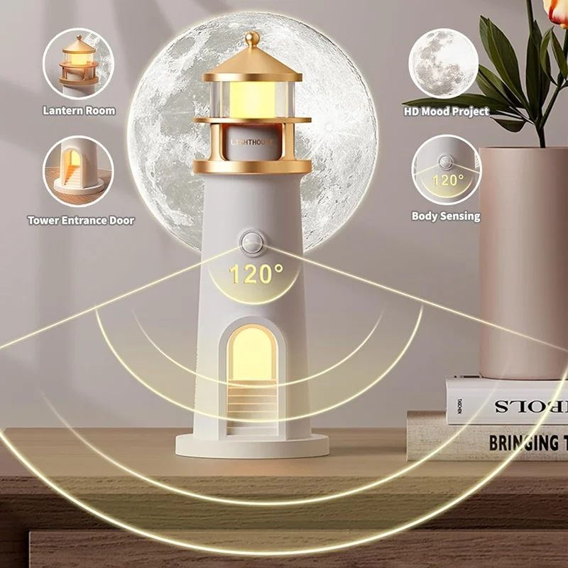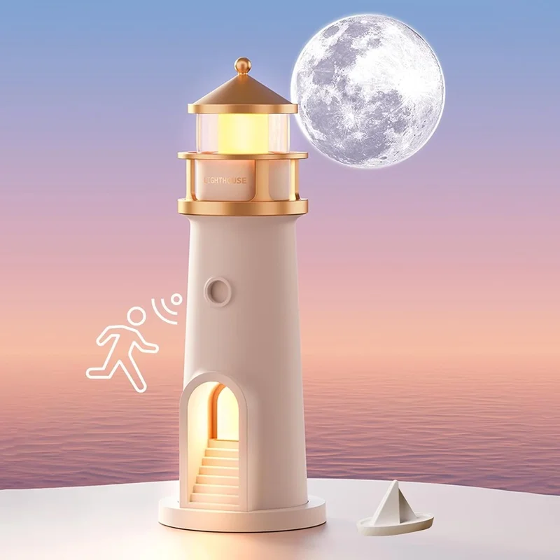 Moon Projection Night Light Lighthouse Decorative Light Charging Bluetooth Music Birthday Gift Suitable for Children and Lovers