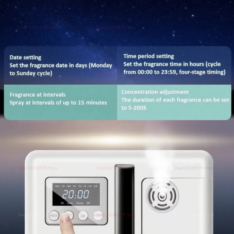 - **User-Friendly Settings & Operation**: Easy-to-set programs for scheduled diffusion, including daily operating hours, workdays, and fragrance concentration.
