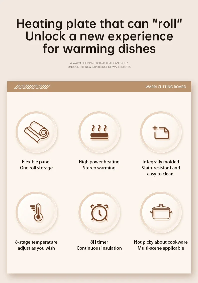 Food silicone heating pad, electric heating tray, foldable and flexible food warmer